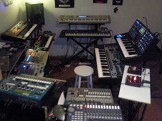 Tout cela dépend de mon boulot, de mon temps libre, de mes activités, de ma vie sociale, etc. J’essaie le plus possible de passer du temps avec mes machines. Bien souvent je « programme » des plages horaires ou des journées destinées à mes synthés. Le problème est que l’inspiration ou l’envie ne collent pas forcément.